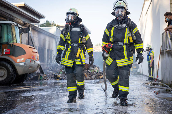 An der Einsatzstelle wurden rund 100 Einsatzkräfte zur Brandbekämpfung eingesetzt. Das Feuer ist unter Kontrolle. Allerdings gestalten sich die Löscharbeiten sehr aufwändig und werden sich noch über mehrere Stunden hin ziehen. Die hohen Außentemperaturen erschweren die Löscharbeiten zusätzlich und verlangen den Einsatzkräften einiges ab.
