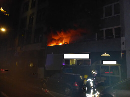 Kurz darauf gingen Notrufe aufgrund eines brennenden Balkons in der Mainzer Neustadt ein. Es brannten im 1. Obergeschoss eines Wohnhauses Gegenstände hinter einer Betonbrüstung. Sofort wurde ein Löschangriff sowohl über die Drehleiter als auch über den Treppenraum vorbereitet. Kurz nach Eintreffen barst die Scheibe zur Wohnung, weshalb die Wohnung verrauchte. Kurze Zeit später war das Feuer gelöscht. Auch hier konnte bis auf die Rußablagerungen ein größerer Sachschaden an der Wohnungseinrichtung verhindert werden. Da sich der Rauch in alle Wohnungen des Gebäudes unterschiedlich stark ausgebreitet hat, wurden nacheinander die Wohnungstüren geöffnet und die Wohnungen entraucht. Eine Bewohnerin wurde vorsorglich vom Rettungsdienst in eine Mainzer Klinik transportiert. Der Einsatz wurde unterstützt durch die Freiwillige Feuerwehr Stadt.