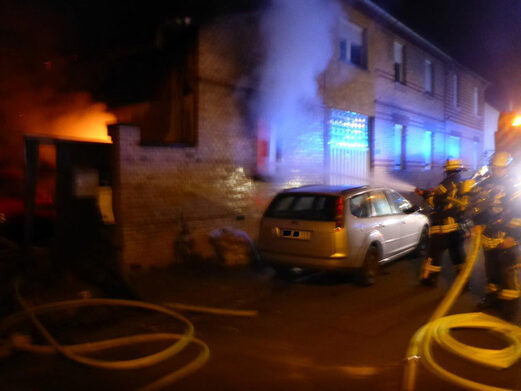Beim Eintreffen der Einsatzkräfte konnte eine starke Rauchentwicklung und Flammenschein aus einem Fenster und im Bereich der Hauseingangstür eines zweigeschossigen Nebengebäudes festgestellt werden. Zu diesem Zeitpunkt war unklar, ob sich noch Personen in dem Gebäude befinden.