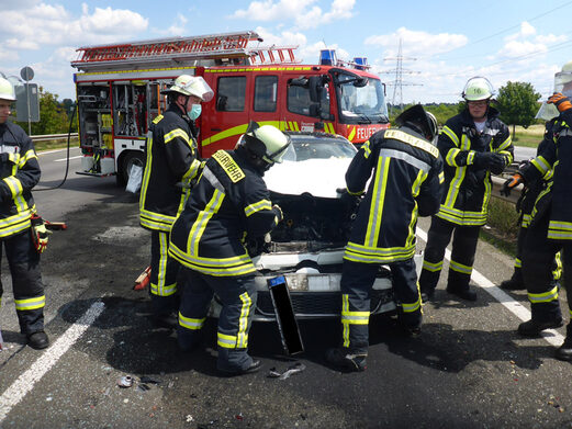 Bis zu Abtransport der Fahrzeuge sicherten Einheiten der Feuerwehr die Unfallstelle ab und stellten den Brandschutz sicher.