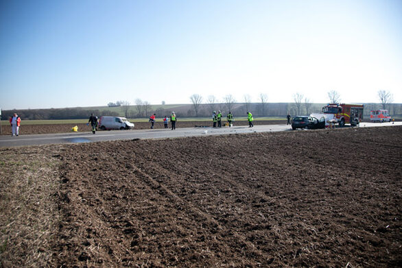 An der Einsatzstelle angekommen bot sich den Einsatzkräften ein Bild der Zerstörung. Es wurde festgestellt, dass zwei Fahrzeuge, ein PKW und ein Kleintransporter (VW-Bus) aus bisher unbekannter Ursache frontal kollidiert sind. Beide Fahrzeuge waren schwer beschädigt. Die Fahrer der beiden Fahrzeuge waren schwer verletzt in ihren Fahrzeugen eingeklemmt. Der Beifahrer des Kleintransporters lag neben seinem Fahrzeug ebenfalls schwer verletzt.