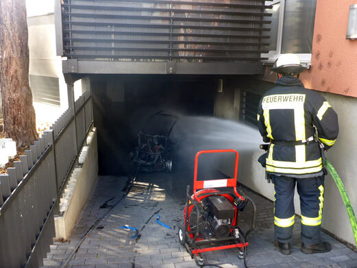 Durch eingedrungenen Brandrauch wurden auch die beiden Wohungen über der Tiefgarage in Mitleidenschaft gezogen. Die Brandursache ist unklar. Die Polizei hat die Ermittlungen aufgenommen.