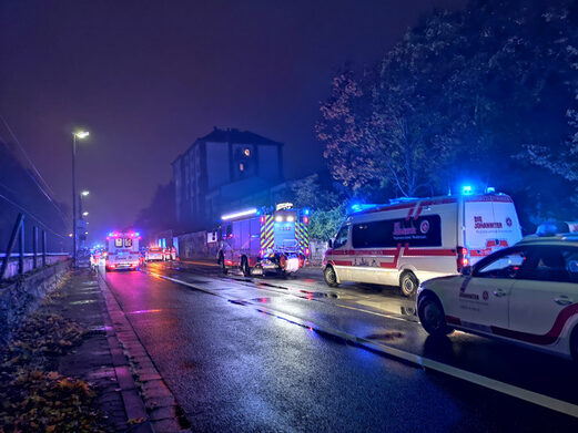 Neben der Feuerwehr waren im Einsatz: Der Rettungsdienst mit einem Rettungswagen, einem Krankentransportwagen und einem Notarzteinsatzfahrzeug, die Polizei mit einem Streifenwagen.