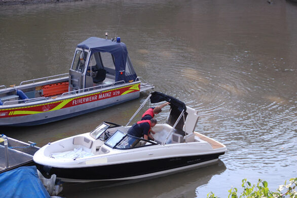 Noch relativ glimpflich verlief am frühen Freitagabend ein Feuer auf einem Sportboot im Mainzer Winterhafen. Um 18.12 wurden die Kräfte von Berufs- und Freiwilliger Feuerwehr alarmiert. Da die Lage zunächst unklar war, waren auch die Rettungsboote der Feuerwehr in Alarmbereitschaft sowie das Feuerlöschboot.